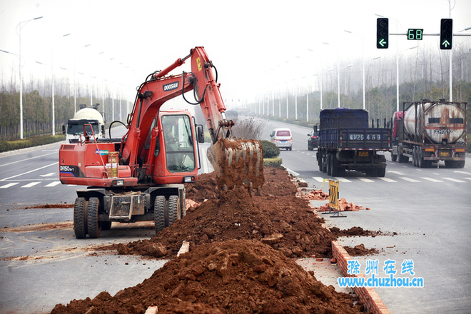 12月19日,施工人员在洪武路进行绿化带建设。为改善滁城出入口道路交通环境,确保道路更加安全畅通,我市对中都大道、丰乐大道、上海路、滁来路、滁宁快速通道等10条进出城道路进行“提速治堵”。目前,各主干道正在有序地施工,预计该工程于12月底基本完工。记者卢志永摄