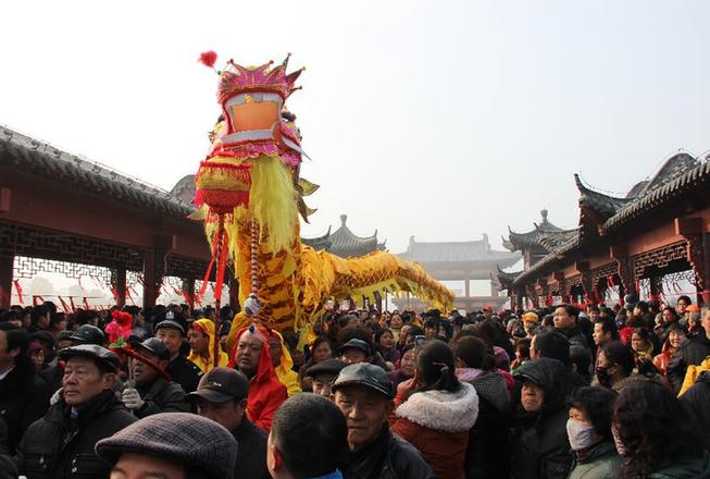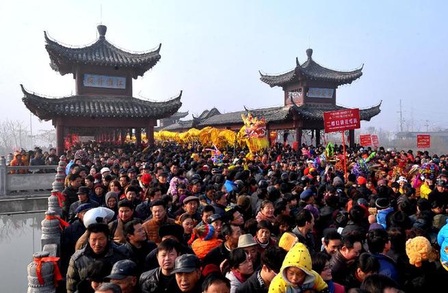 2月15日,安徽全椒群众举着大型龙灯经过太平桥。当日是农历正月十六,清代文豪吴敬梓故乡——安徽全椒县独特的传统民俗活动“正月十六走太平”拉开帷幕。从凌晨至深夜,数十万群众扶老携幼赶到太平桥,在上面走一走,以祈祷马年风调雨顺、平平安安。新华社发(沈果 摄)