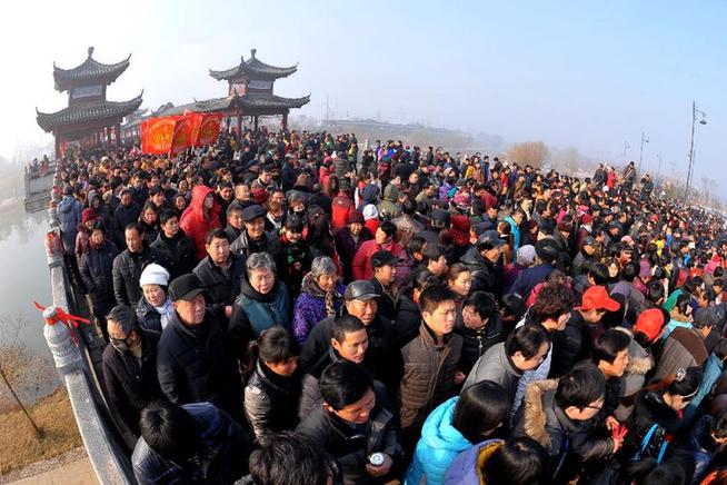2月15日,安徽全椒太平桥上摩肩接踵。新华社发(王家国 摄)