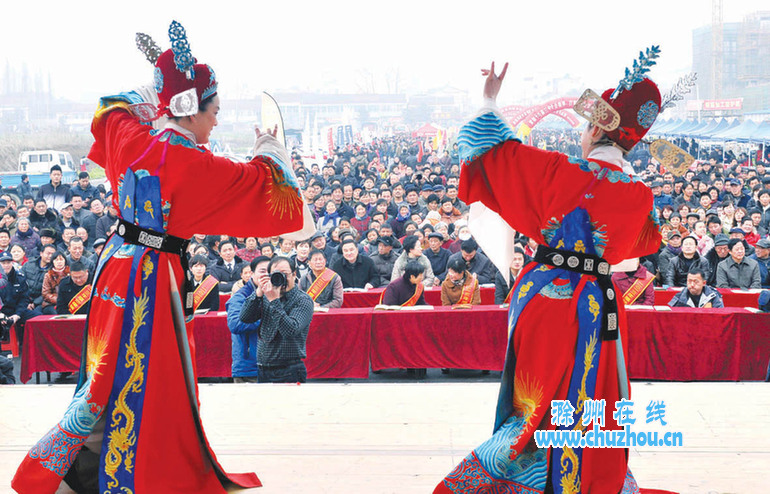 这边是传统商贸活动,那面是惠民文艺演出。上午9:40,在宽阔的腰铺镇育才东路上,由南谯区委区政府主办的“中国梦·我的梦”二郎庙会文艺演出热闹开场。一段极具地方特色的“河蚌舞”,展示了当地群众的传统民俗文化生活;一首言辞真切的《好人就在身边》,道出了社会主义核心价值取向;随后,女声独唱《红旗飘飘》、小品《只差一天》、快板《中国好人王学成》、舞蹈《插秧舞》等十余个节目轮番上演,引得现场观众阵阵欢呼。