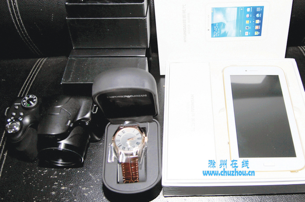 果然不出所料,所谓“土豪金手机”、“阿玛尼男士手表”、“ 超高清摄像机”,都是假冒的塑料制品。这3件号称上万元的“奖品”,其包装盒上均没有厂名、厂址,外包装箱上也没有企业名称、经营者地址。这三样仿真玩具加起来,价值不过数十元。
