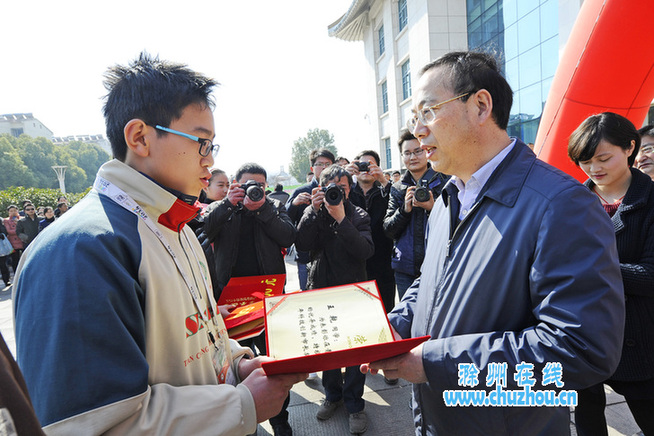 “市长奖的开展,让我们深切感受到滁州这座魅力城市蕴藏着无限活力和创新潜能,也使我们对滁州的未来更加充满信心!”3月15日上午,市长张祥安在为第二届青少年科技创新市长奖获奖者颁奖时,表达了欣慰又喜悦的心情。据悉,第二届市长奖共有温笑、马宁、刘珊珊、赵煜、王乾、刘天一、申思思等7名学生及胡忠国、史绵武、程元生等3名教师获此殊荣,另有盛冬燕、王福雪、夏伟、刘龙丰等4名辅导员摘得“园丁奖”。(皖东晨刊3月7日3版曾经做过详细报道)