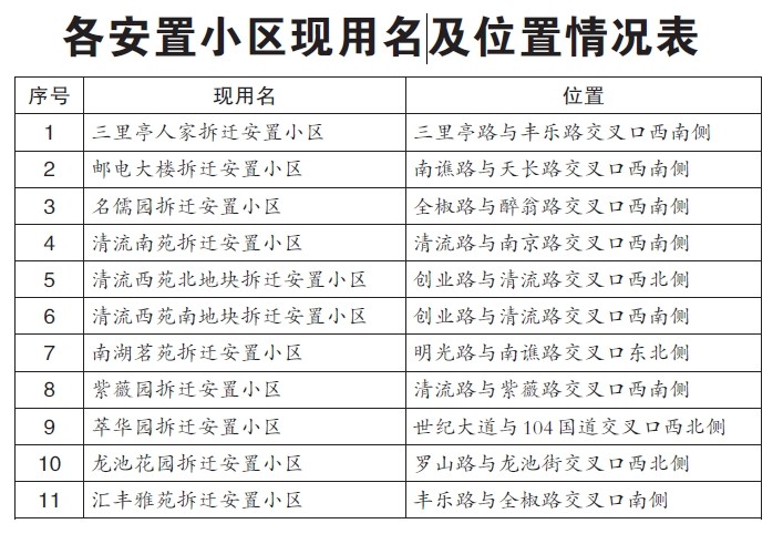 据市安居中心相关负责人介绍,2010年我市曾对定远路、西涧路、天长路等20个拆迁安置小区公开征集过名称,效果不错,这些安置小区根据征集来的名字,更名为南邰新苑、滨湖小区和红叶山庄。此次征名是第二次,参与征名的11个安置小区包括三里亭人家拆迁安置小区、邮电大楼拆迁安置小区、龙池花园拆迁安置小区等,其现在的名称是棚户区改造时项目立项所用,仅以周边道路或位置来命名,缺乏一定内涵。