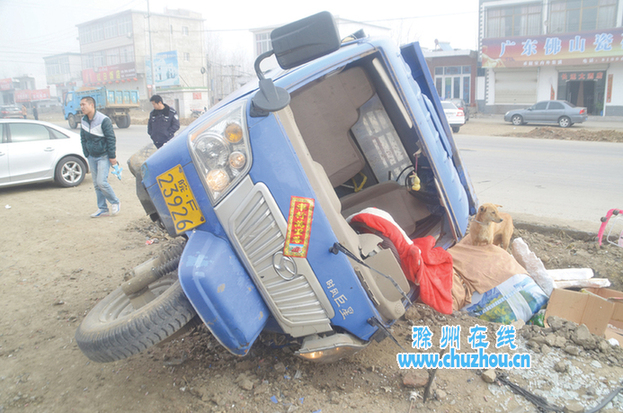 当天上午8时许,怀远籍驾驶人陶某,开着一辆“皖F23***”三轮摩托车,由怀远前往常州途经明光市。行至104国道桥头路段红塘头附近时,对面驶来一辆轿车突然向左拐弯,占据半个车道。陶某猝不及防,慌乱中急忙向右猛打方向,并采取紧急制动。