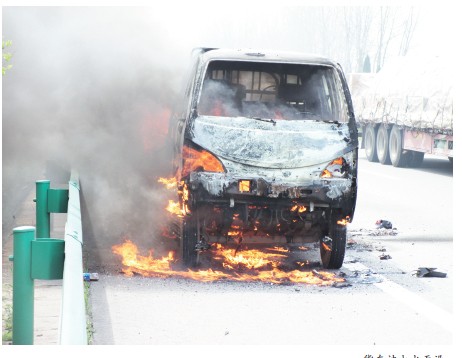 失火前,车辆行驶正常,可当行驶至事发地段时,夏某无意中从倒车镜里才发现车厢着火。紧急停车后,夏某取出车上仅有的一瓶开水灭火,可惜为时已晚,灭火效果微乎其微。