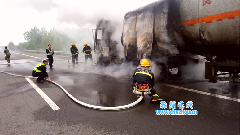 突然起火的货车让事发高速路段一下拥堵起来,事发路段很快浓烟漫天,后方车辆也拥堵至几公里长。接到报警后,辖区凤阳消防部门迅速出动赶赴现场。消防官兵赶到时,发现起火的是一辆河南牌照的油罐车,此时,熊熊大火已将整个车头包围,火势正向车身蔓延,高速民警也赶到对事故路段进行了封锁。