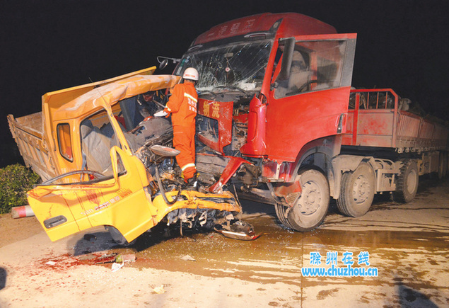 两车严重损毁,消防展开营救。王晓丹 刘继明摄