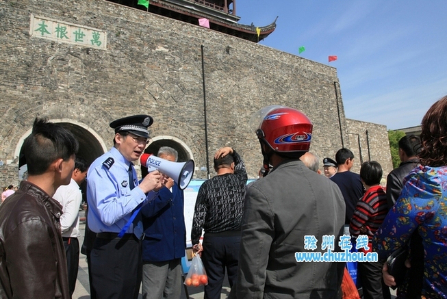 凤阳经侦民警在鼓楼广场向市民进行宣传。孟斌摄
