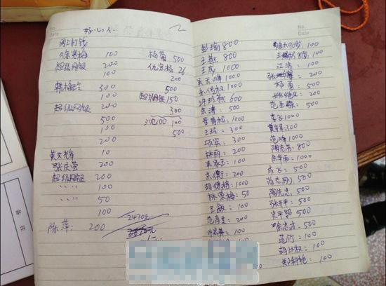 本子上记录着各方好心人的捐款