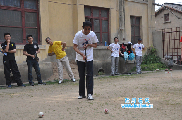 据介绍,门球是在平地或草坪上,用木槌击打球穿过铁门的一种室外球类游戏。因其占地少,花费省,很安全,且技术简单,比赛时间短,运动量也不大,适于中老年人。20年前,这项运动传入滁州,深受我市广大中老年人喜爱。“这项运动能锻炼手、脑、耳等身体多个部位,而且充满了趣味性,比赛中不仅要想着让自己的球进门撞柱得分,还要设法破坏对方的进攻。此外打门球还能结识一些朋友,打累了,大家就坐下来,歇歇,聊聊天,感觉非常开心。”采访中,南门社区一队员说出了门球运动的魅力。