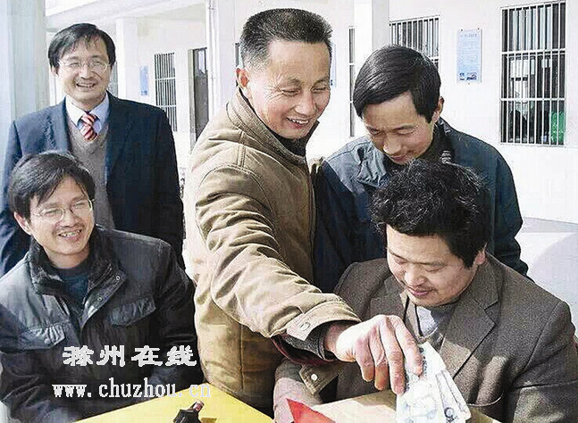 朱老师在发动“孝老爱亲”捐款