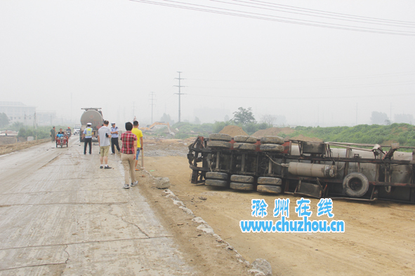 当天,河南省驾驶员丰某,驾驶一辆装载40吨醋酸的“皖VLJ8**挂”大型罐车,由河南省开往浙江省。上午9点20分左右,车辆途经104国道明光市环城路,此处道路施工,路面较窄。加上当时小雨路滑,该车在与一辆悬挂“皖LK8**挂”号牌的大型油罐车会车时,双方避让不及,导至丰某驾驶的罐车方向失控,翻到左边2米深的路下。