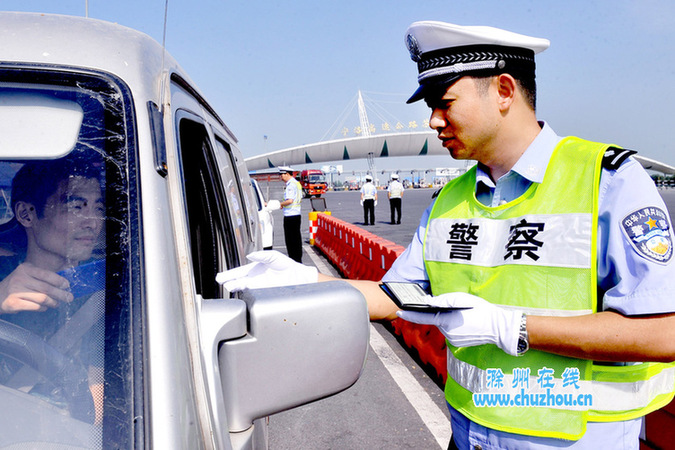 7月23日,市公安局交警支队高速三大队民警,冒着高温酷暑坚守在工作一线,检查开往江苏南京方向的过境车辆。为积极配合南京警方做好青奥会举办期间的交通安保工作,市公安局按照公安部和省厅统一部署,在宁洛高速曹庄主线收费站设置公安检查站,组织交警、武警、治安警、消防警4个警种的警力,从7月15日起实行第一阶段三级勤务安保,对所有入苏进宁的“两客一危”车辆(即长途大客车、小型客车含轿车、危化品运输车)进行安检。