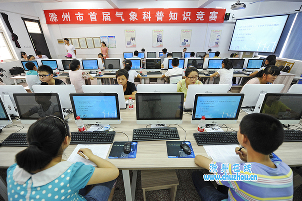 一天中最高气温和最低气温出现在什么时刻?彩虹的出现是光的折射还是反射?风力的等级怎样划分?……气象与我们的生活息息相关,可这样的气象知识你又知多少?7月22日,由市气象局、市科协、市教育局联合主办的全市首届青少年气象科普知识竞赛在滁城紫薇小学鸣锣,来自六县市和两区的8支代表队的学生纷纷拿出自己的“看家”本领,全力争夺参加省竞赛的资格。
