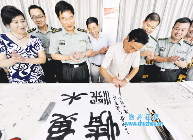 日前,琅琊区总工会组织该区职工书画协会的书画家们走进驻地部队,开展迎“八一”送书画进军营活动。当日,书画家们纷纷现场挥毫泼墨,用一幅幅饱蘸激情的艺术作品表达了对人民子弟兵的深厚感情。