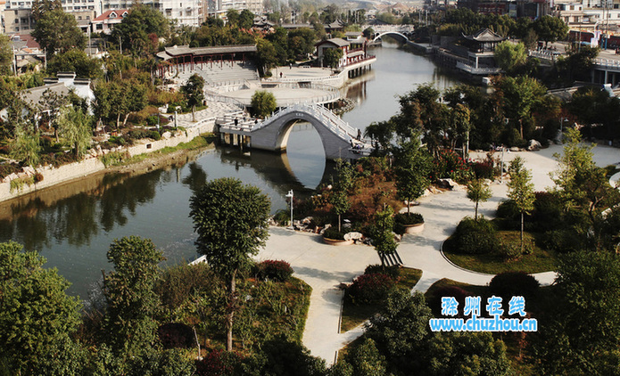 8月19日,天长市老城区核心景观区滨河公园风景如画。该公园启动于2009年6月,沿原内城河(人们称其为“臭水河”)而建,历时4年,耗资5亿元。目前,长达6.7公里的公园,其亭台轩榭,配以小桥流水、花草树木,往返游船,似若步入人间仙境,每天,前来赏景、休闲、健身、娱乐的市民络绎不绝。该公园被评为“安徽省人居环境范例奖”。李炳旺 徐米 摄