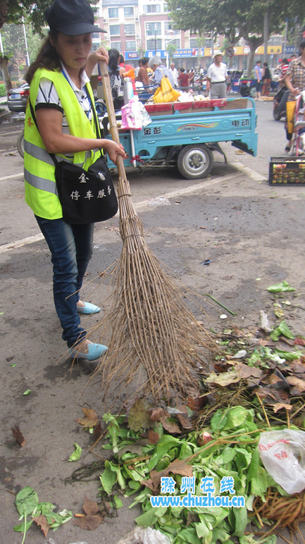 见环卫工清扫路面太辛苦,滁城丰乐菜场附近路段的3名公共泊车位收费员便主动帮忙清扫,并承担起停车泊位路段的垃圾清扫任务。“这个路段流动商贩多,产生的垃圾量大,环卫工袁师傅忙不过来。我们这样做既能帮助袁师傅,又能改善停车泊位路段的卫生环境。”前天,停车收费员向大姐笑着说,虽然这不是她们的本职工作,干起来还有点辛苦,但却特别开心。