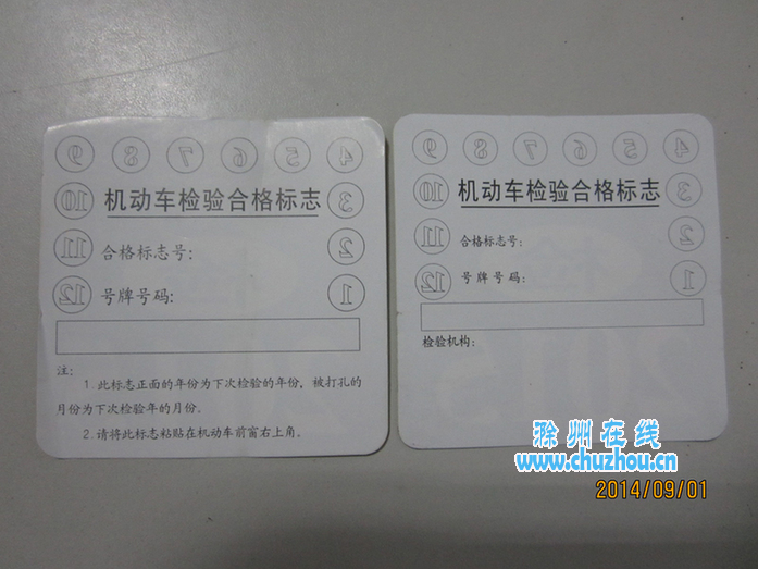 “‘标志’的正面,老版新版并无明显差异,不同的在反面”,民警向记者介绍,“老版标志的下端,是相关注解和提示内容;而新版同样位置,则标注‘检验机构’的字样”,“如果是需要检验的车辆,须在此填写检验机构名称,如‘滁州车辆监测站’”,“如果是免检车辆,则须标注‘无(免于安全技术检验)’”。