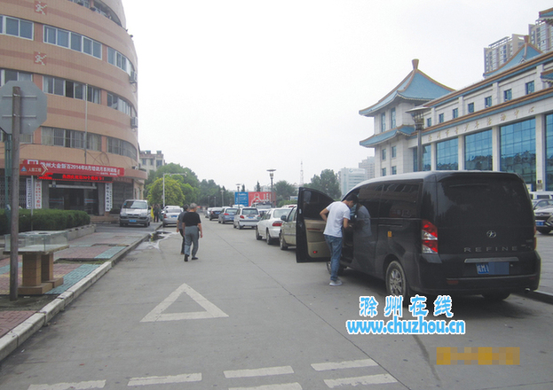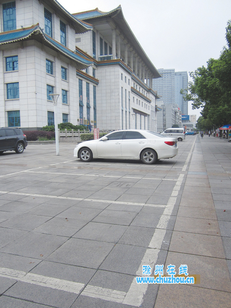 9点15分,滁州大剧院北侧75个停车位里,只停着不到10辆车;而旁边的电大门口,却有十多辆轿车违停。