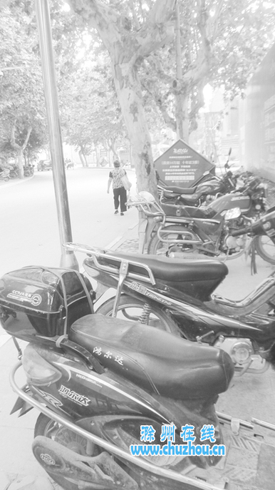 9月1日上午,记者来到育新路,随后在1912大门口看到,两侧并不宽敞的人行道上已被停满了摩托车、电动车及自行车,占据了大半路面。从这里沿着育新路往西走,人行道被占情况更为严重:北侧一段人行道上除了有违停车辆外,还被堆上了石砖,路面几乎完全被占,“水泄不通”。南侧人行道旁竖立着广告牌,留下的一米多宽的路面上被横七竖八地霸占一空,行人根本无法从此通行。