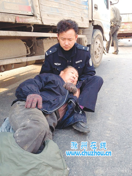 “说实话,因为他体型较胖,不久我就感觉到非常吃力”,李毅告诉记者,“但不知道伤在哪里,我不敢随意乱动,更别说调换姿势”。直到半个小时之后,120救护车从滁州市区赶来,李毅才拖着早已麻木的双腿,帮助医护人员将男子抬上救护车。