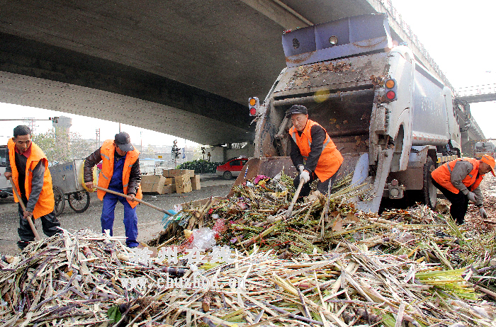 11月26日,琅琊区城管执法局环卫所组织环卫工人和一台机械车,对明光路跨线桥下近5吨的垃圾进行了清理。本月以来,该局全面加大对城区老旧小区、城中村和农贸市场等地带死角垃圾的整治力度,累计清理各类垃圾200余吨,维护了市容环境的清洁干净。图为清理垃圾现场。记者卢志永通讯员温仕兵摄