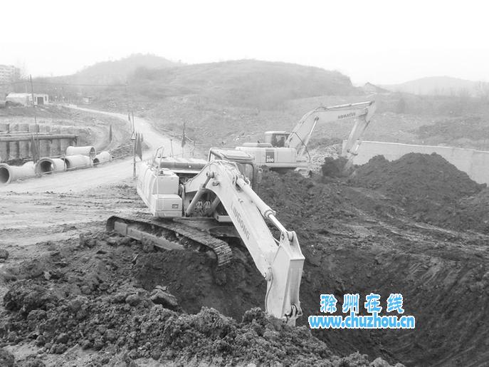 23日下午,滁州在线记者来到学院路与西涧路交口处看见,道路南侧的学院桥桥梁桩基已经建好,桥板尚未上梁。道路北侧施工现场热闹非凡,几辆挖掘机正在开挖土方,装满土方的渣土车驶离工地,混凝土搅拌车进入工地。