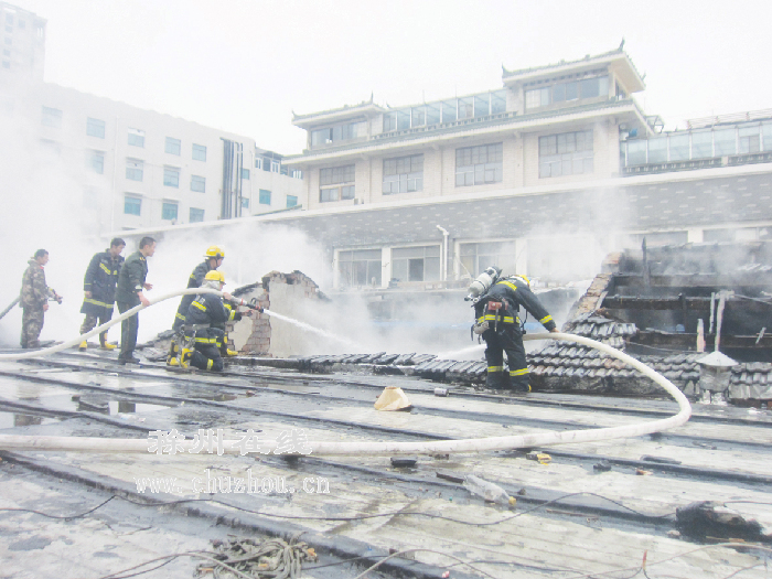 昨天上午10点半,记者路过清流公园时,忽然看到西北角上空浓烟滚滚。循烟而去,几分钟后,记者在几里路外的天长西路福满楼老年公寓附近路段看到,4辆消防车停在路边,从车上接下来的几根水管直通向老年公寓后面的一排瓦房。