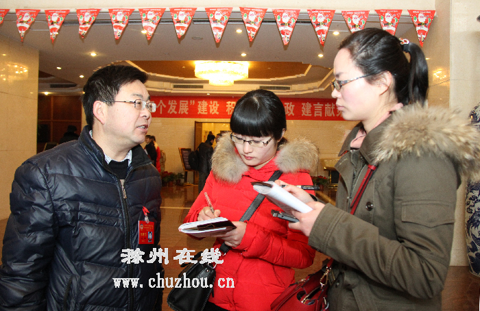 市政协五届三次会议、五届市人大三次会议分别于1月14日、15日在滁召开。图为来自基层的参会政协委员在接受记者采访。 记者朱永斌 贾玉海摄