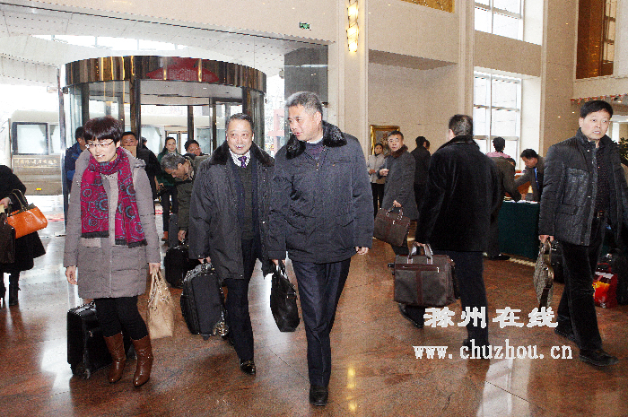 市政协五届三次会议、五届市人大三次会议分别于1月14日、15日在滁召开。图为来自明光市的政协委员们在下榻酒店报到。记者李晓村 卢志永摄