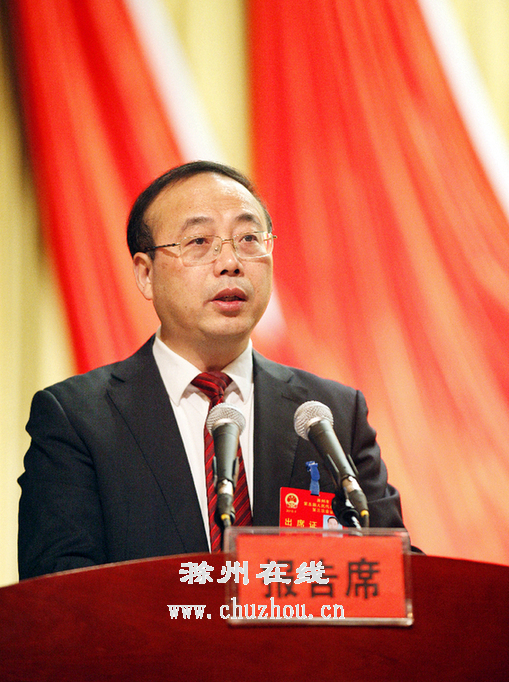 各位代表,同志们,我们已经踏上再出发、争上游的新的征程,时不我待,责在其身。让我们紧密团结在以习近平同志为总书记的党中央周围,在省委、省政府和市委的坚强领导下,进一步解放思想,改革创新,团结拼搏,开拓奋进,为开创滁州创新发展、绿色发展、健康发展的新局面而努力奋斗!
