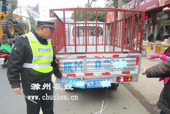 当天上午10时30分许,省道S205线天长市境内10公里+500米处,当地交警大队民警驾车巡逻时,发现一辆悬挂“皖M444**”牌照的轻型普通货车,车尾喷涂放大车牌却是“皖M308**”。民警立即将车拦停,发现该车竟然悬挂两层牌照,外层是“皖M444**”,里层是“皖M308**”。